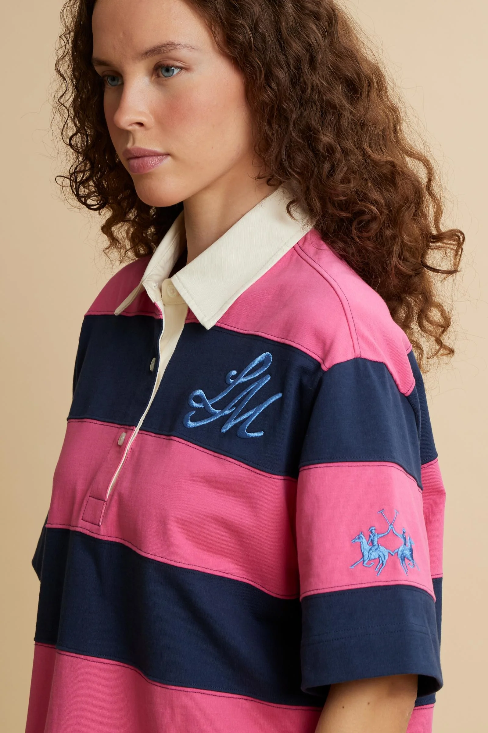 Damen Rugby-Poloshirt aus schwerem Baumwolljersey mit Maxi-Streifen - Christina