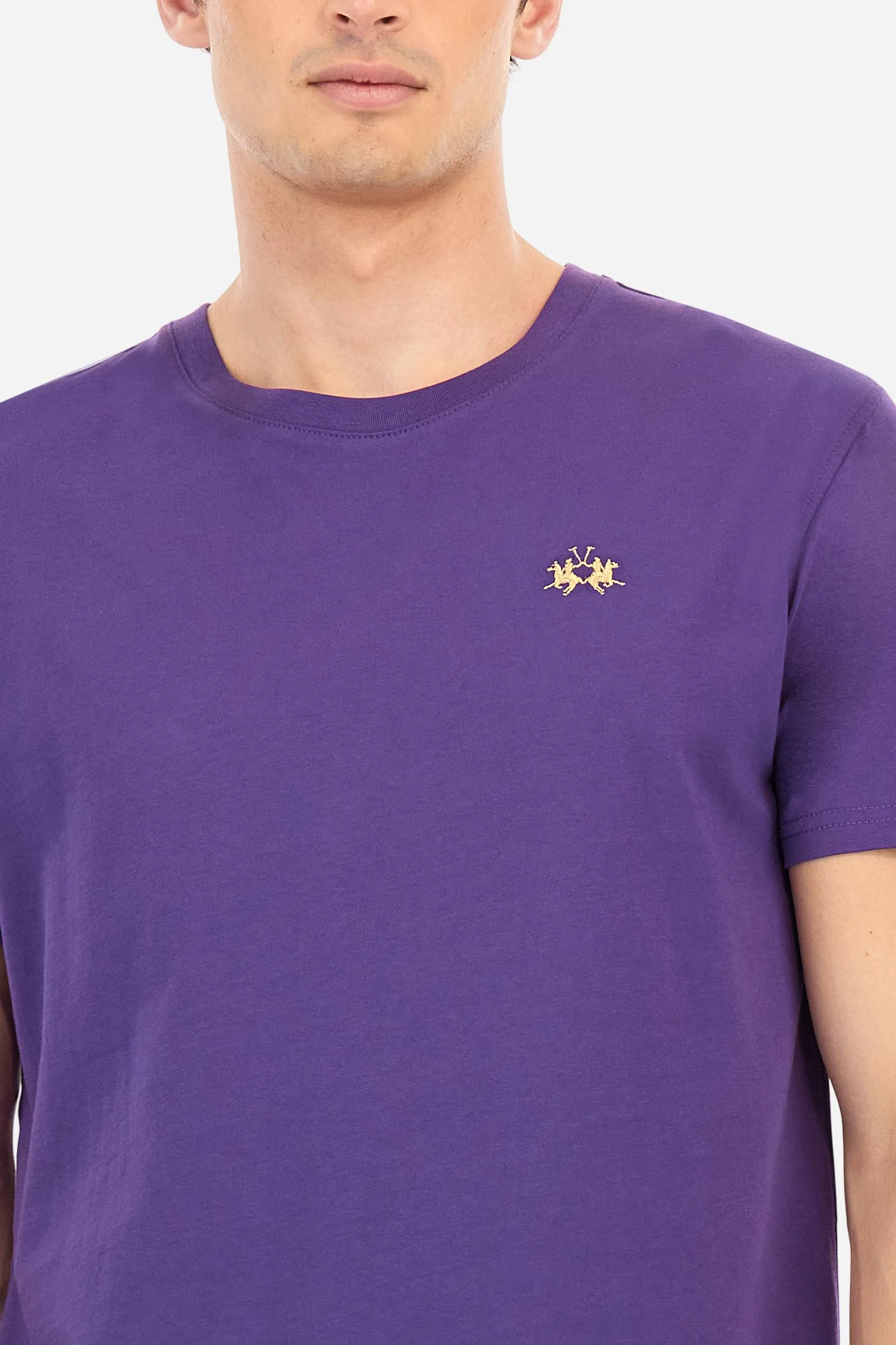 - Gesticktes Logo in Kontrastfarbe auf der Brust